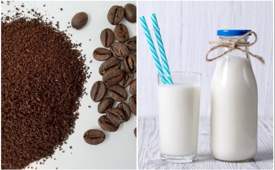 - Chuẩn bị một ly sữa tươi, khoảng 300ml, tiếp đó là 3 – 5 thìa bã cà phê đã được lọc sạch tạp chất và xay nhuyễn.